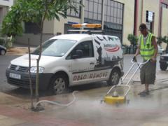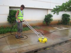 High pressure floor scrubber used to remove dirt from high traffic area by G.R.S