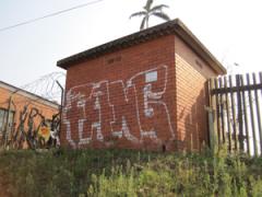Graffiti Tag removed from face brick substation wall by G.R.S
