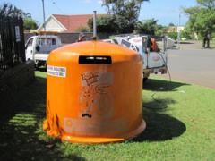 Graffiti cleaning from Mondi recycling bins by G.R.S