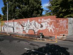 Graffiti Tags being removed from concrete barrier wall by G.R.S
