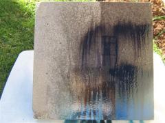Anti Graffiti shield coating protected concrete on the left. Substrate penetration occured on the untreated right side.