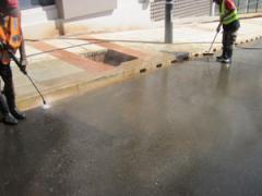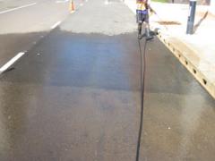 High pressure washing of oil and dirt from road surface by G.R.S