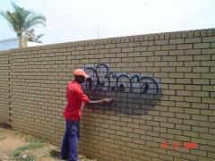 Graffiti Tag being removed from facebrick by G.R.S