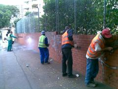 Graffiti removal and high pressure washing of concrete embankment wall by G.R.S