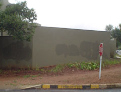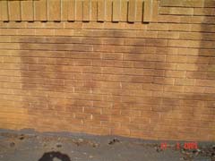 Trying to paint out Graffiti tags on face brick is often not an effective method of removing Graffiti. Very often the colour will not match the face brick and the Graffiti shadow will most likely resurface. In instances where face brick has been painted in order to cover Graffiti, the problem is worsened and the cost to restore the wall to it's original Graffiti and paint-free condition is substantial. (Image C) |