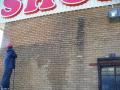 Graffiti Removal Services was called upon to remove dirty outline and water marks from a porous face brick wall caused by previous signage. We also pressure cleaned other areas from the building....